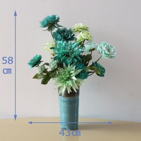 光触媒アートフラワーアレンジメント【カミン】この陶器製花器の色を、「アースブルー」といいます。お花も今年の新色を入れました
