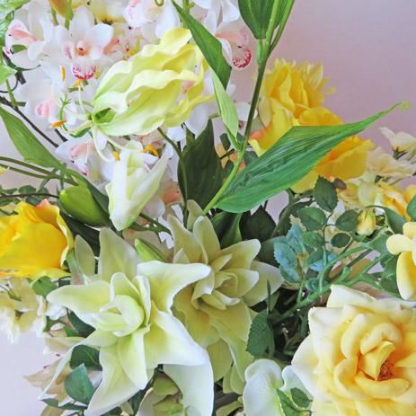 光触媒高級造花アレンジメント【ラピド】可憐な花々と共にシンビジュームの魅力を高級造花アレンジメントで表現しました。高さ90cmです