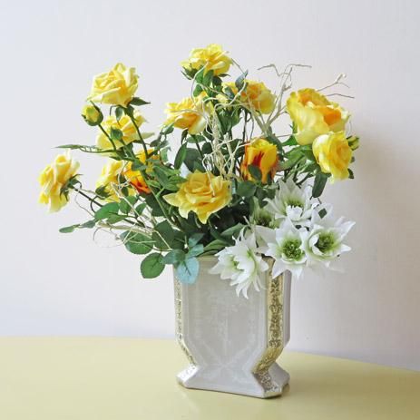 光触媒アートフラワーアレンジメント【パハロ】バラとセルリアのアレンジです