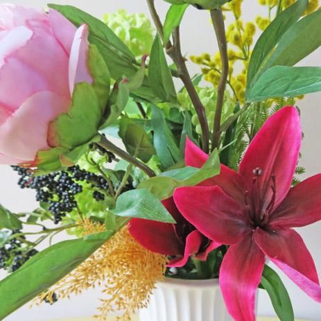 光触媒加工された造花のアレンジメントなので、ホコリが付きにくくキレイが長く続きます。
