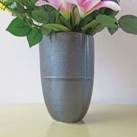 リリーは、感じの良い薄めのラベンダー色です。全体が優しい雰囲気になっています。高級ローズ、シンビジュームが全体をまとめ上げます。花器は、釉薬とラインが特徴的な国内トップブランドの陶器製です。開店祝い、開院祝いなどにいかがでしょうか。