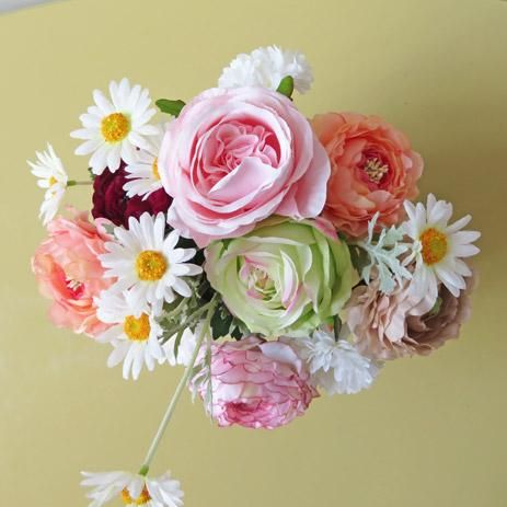光触媒アートフラワーアレンジメント【ブユナ】柔らかな色彩が、目に優しいです「ほんわり」としている素敵な高級造花アレンジです。