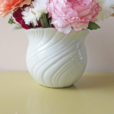 高級造花アレンジメント【アメーリア】文様で個性的な花器に、フェミニンを感じさせるアレンジで。