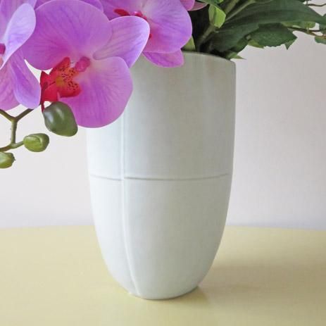 花材は、二種のリリィー、シンビジューム、コチョウラン、7種のローズ、新作のブッシュ類などです。アーティフィシャルフラワー(高級造花)だから一本一本に表情があります。エントランスやゲストルームにいかがでしょうか。光触媒加工品なのでホコリが付きにくく、キレイが続きます。花器は、シンプルでありながら、表面に変化が現れる釉薬を使用し、奥ゆきを感じられる仕上げになっています。より釉薬の美しさが際立つラインが特徴の花器です。