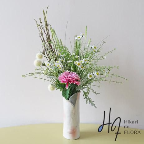 造花アレンジ【ダリアとカモミールの咲くガーデンから】ダリアとカモミールの咲くガーデンから、お花を摘み取ったイメージです。