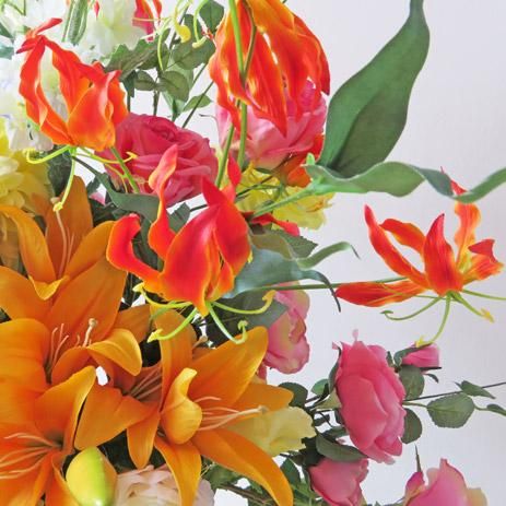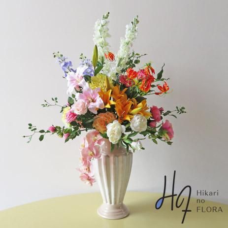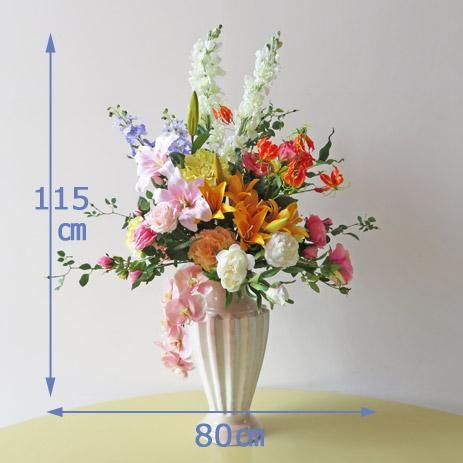 高級造花インテリア【アビゲイル】大型の高さ115cmのアーティフィシャルフラワー(高級造花)を使用した大型アレンジメント。咲き誇るカサブランカリリーが豪華です。