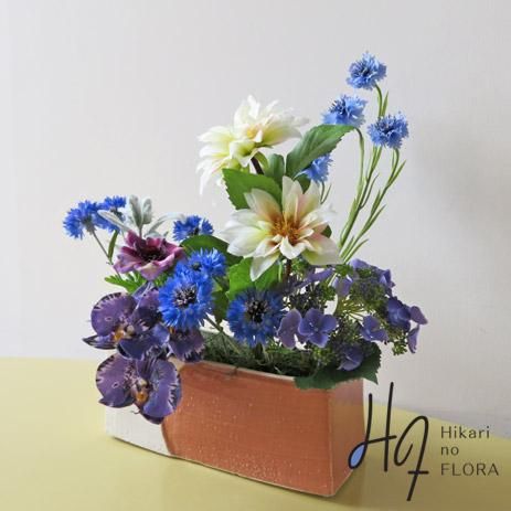 高級造花インテリア【デセオ】個性的な花器にナチュラル感を持ってアレンジしました。