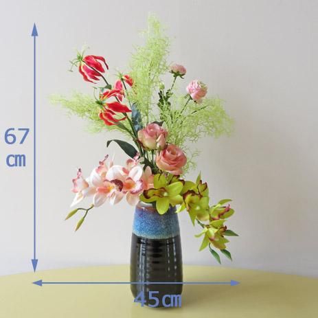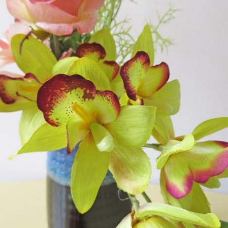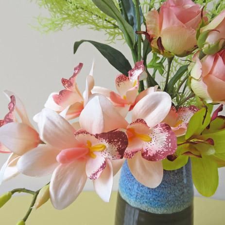 高級造花インテリア【アマーレ】美濃焼の花器にシンビジュームをアレンジしました。