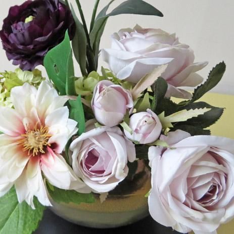 高級造花インテリア【アドゥ】和洋折衷の高級造花アレンジメントです。ダリアのシック感がいいです。