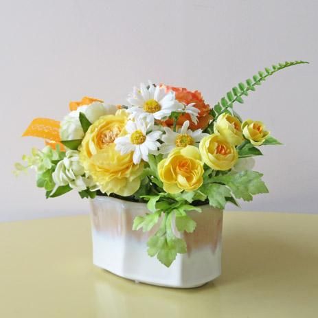高級造花インテリア【ハラディン】黄色、オレンジ、白、グリーンの色彩って、気持ちを回復させてくれますよね。