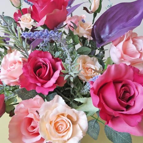 高級造花アレンジメント【マタン】ローズとアートなアンスリウムの高級造花アレンジメントです。