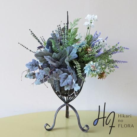 高級造花アレンジメント【サーンス】高級アートフラワー・グリーンのアレンジメントスタンドです。