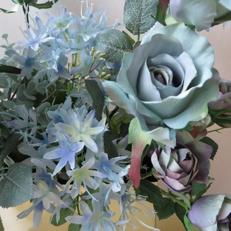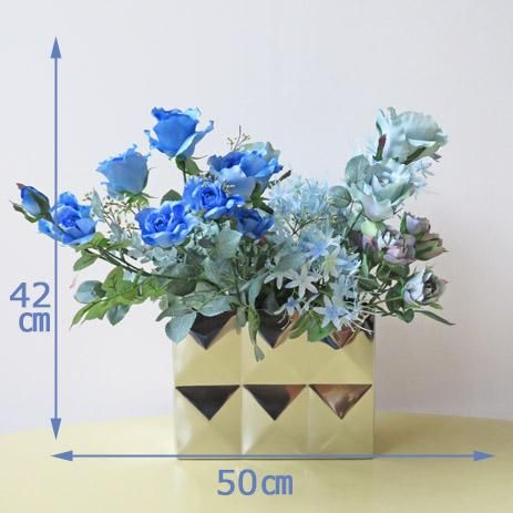 高級造花アレンジメント【ミスモ】ステンレスの花器にブルーローズをアレンジしました。