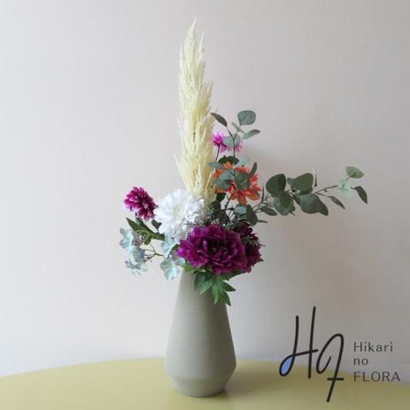 高級造花アレンジメント【オピニオン】パンパスをアート的に使ってみました。高さ107cmのアレンジメントです。
