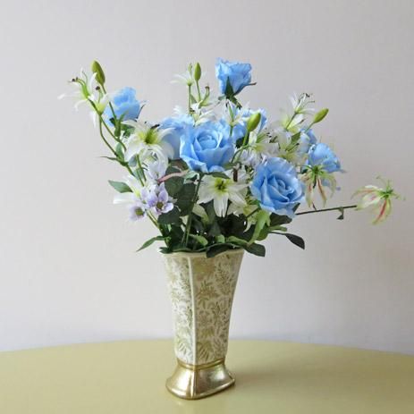 人気のブルーローズを入れたアレンジメントです。「夢が叶う」という花言葉が、贈る方の気持ちを伝えます。開院祝いや移転祝い、新築祝いなどお祝いごとにいかがでしょうか。花器は、国内トップメーカーの陶器製です。