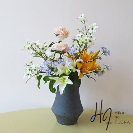 高級造花アレンジメント【リープ】重厚な花器に、自然な感じで。お花それぞれの姿を、美しくアレンジしています。