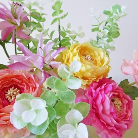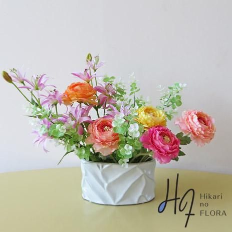 高級造花アレンジメント【トナ】ラナンキュラスの可愛さを手に入れませんか。明るい気分になれます。
