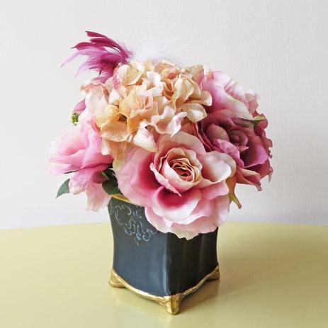 フェミニンなピンクモーブ色が花器に合います。しなやかな感覚が呼び覚まされます。花器は、国内トップメーカーの人気花器です。小さなアレンジメントですが、オシャレに飾り付ければ更に高級感をもだしてきます。
