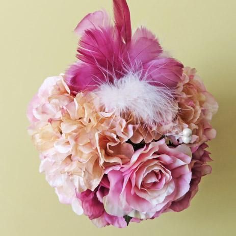 造花アレンジメント【ニーナ】ピンクモーブの色彩がオシャレなラウンド型の、花器もこだわったアレンジメントです。
