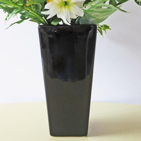 高級造花アレンジメント【ハルバ】グリーンのデルフィニウムがビシッと決まっています。黒色花器にグリーンが冴えます。