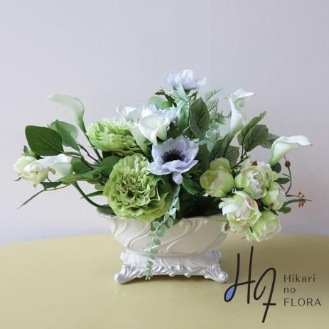 高級造花アレンジメント【クラリッサ】個性的な高級造花アレンジメントです。グリーンがさわやかさを演出します。