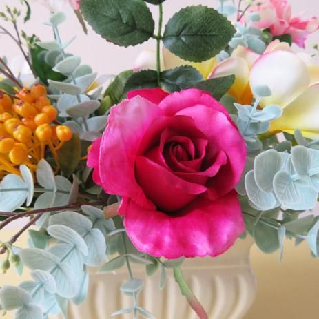 光触媒高級造花アレンジメント【コルネリア】バラとベルフラワーの高級造花アレンジメントです。