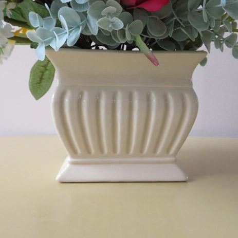 プルメリアの花言葉は「気品」「恵まれた人」です。もちろん香りの良いことでも有名ですよね。ホノルル空港いっぱいに香りが放たれています。花器は、陶器製です。