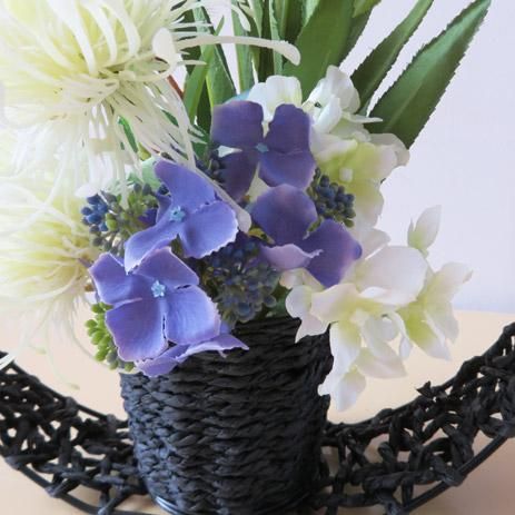 造花インテリア【ピエス】ジャスミンとハイドレンジアのアレンジメントです。