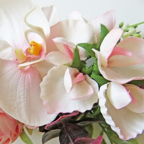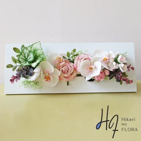 蝶々がとまったかのような胡蝶蘭の優しい花形と、優しい色彩のお花が素敵な、アートフラワーフレームです。胡蝶蘭の縁起の良さも魅力、お祝い事にも使えます。