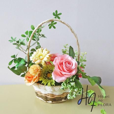光触媒造花アレンジメント【クレール】元気カラーで飾る場所を選びません!万能篭アレンジです。
