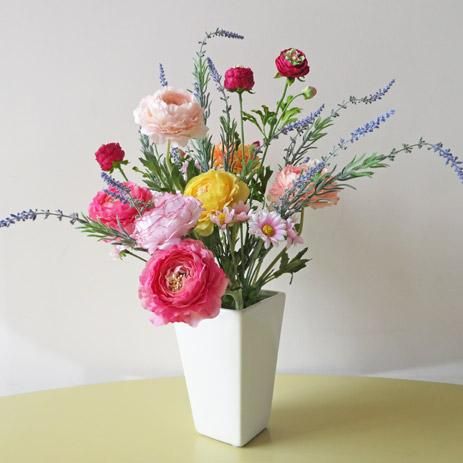 人気のまん丸ラナンキュラスのアレンジメントです。明るい気分にさせてくれるラナンキュラスは、贈り物にも、お部屋飾りにも、受付にも使えますね。バラにない陽気さを感じるから、明るさを求める方に人気のアレンジメントです。