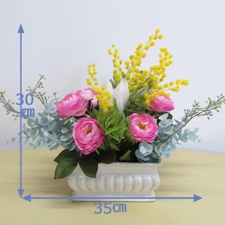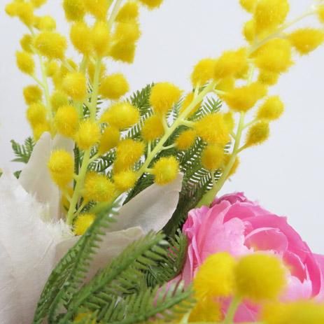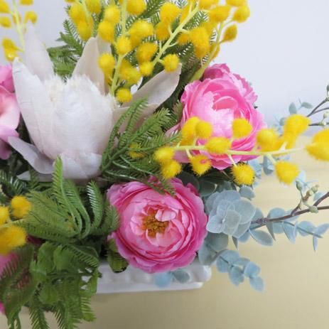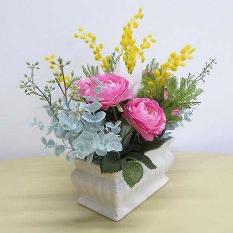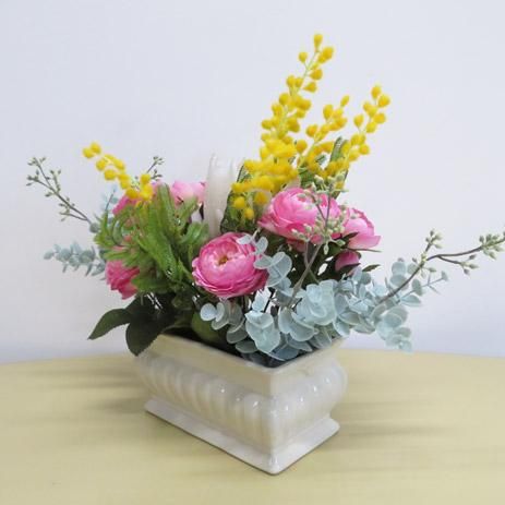 光触媒高級造花アレンジメント【セラフィマ】ミモザを入れて明るくアレンジ。