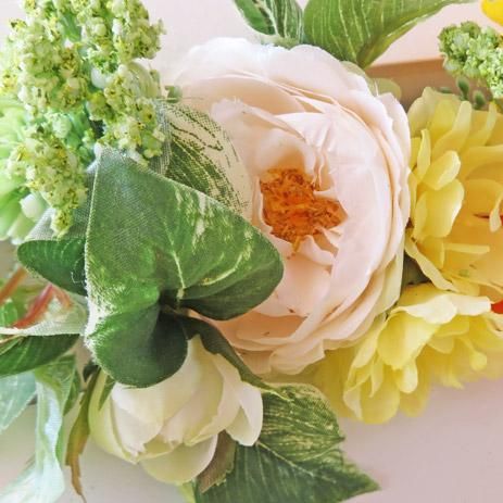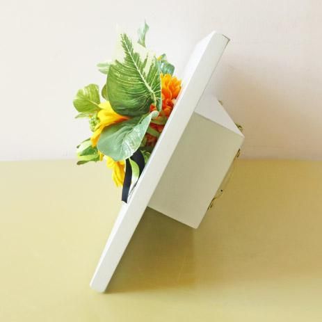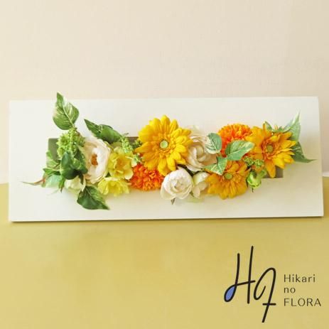 光触媒加工・壁掛け【fm231】明るいカラーに思わず笑顔になれそうなアレンジメントです。ギフト選びに迷ったら黄色をお勧めします。