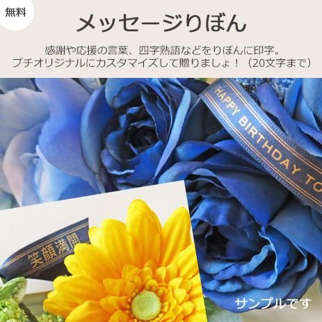 「メッセージりぼん」を添えることが出来ます。画像はサンプルです。おしゃれ感が増しますね。ご希望の方は、注文画面の「備考欄」にリボン希望と記入の上20文字程度でご入力ください。