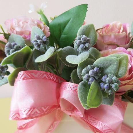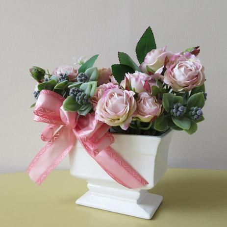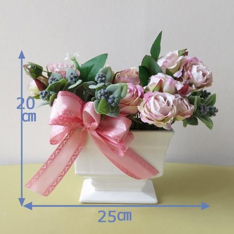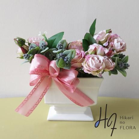 アンティーク調のローズが素敵な造花アレンジメントです。花器は、国内トップメーカーの陶器製です。