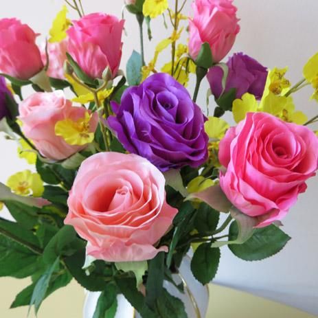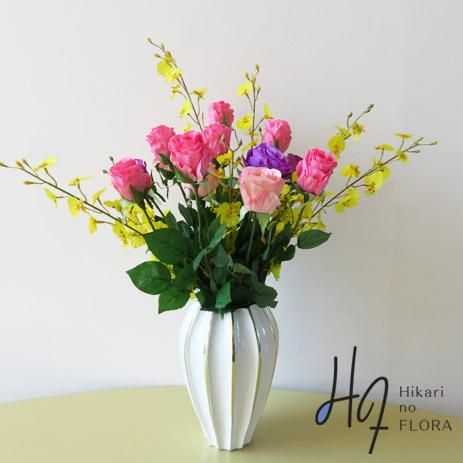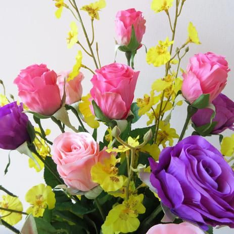 光触媒造花アレンジメント【ソニア】薔薇とオンシジュームの造花アレンジです。