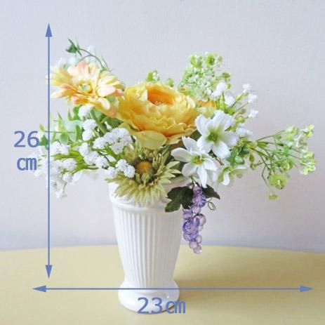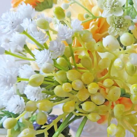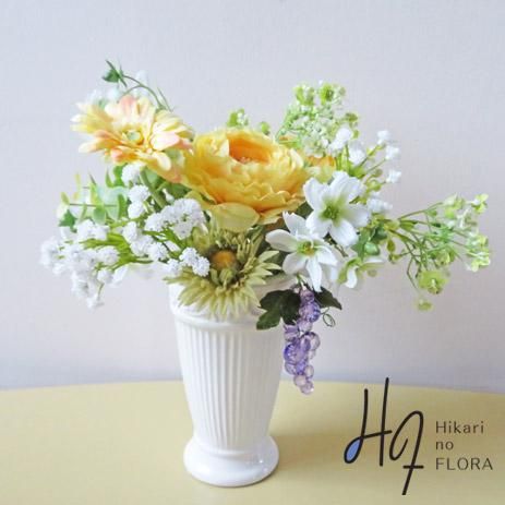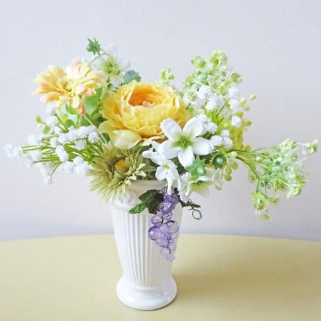光触媒造花アレンジメント【フェアリー】元気がでる黄色のアレンジです。アクセサリーのぶどうで可愛さUP!