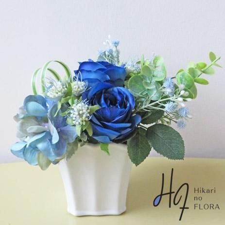 光触媒造花アレンジメント【ジュエル】神秘的なブルーアレンジ。お部屋に飾ってみると気分転換になりますよ。