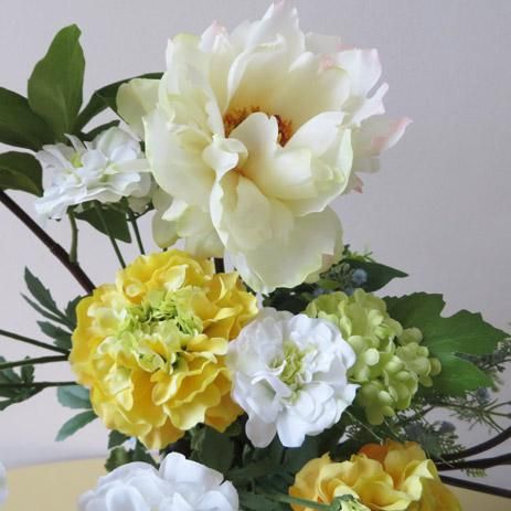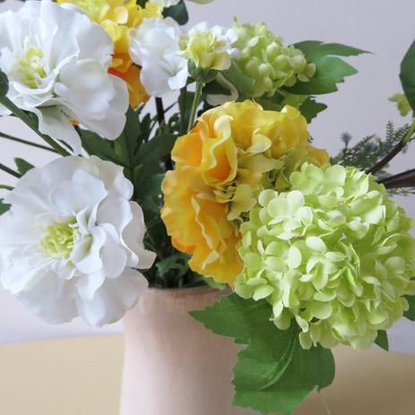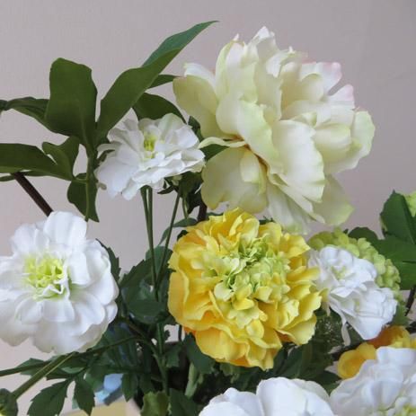 光触媒造花アレンジメント【マリアン】スノーボールとピオニーを大胆にアレンジしてみました。自然な感じが素敵な高級造花アレンジメントです。