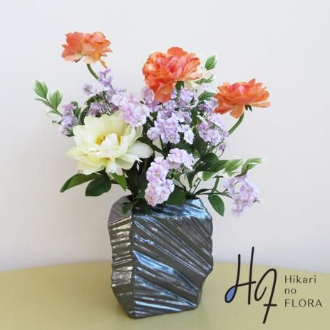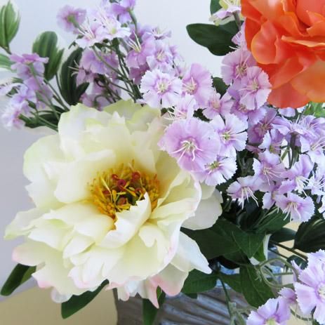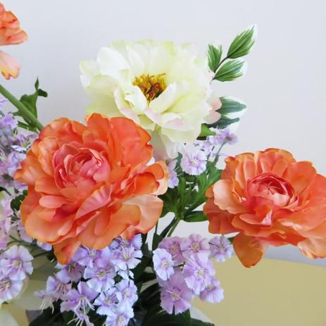 光触媒高級造花アレンジメント【エルティナ】なでしことラナンキュラスの高級造花アレンジメントです。高さ50cmです