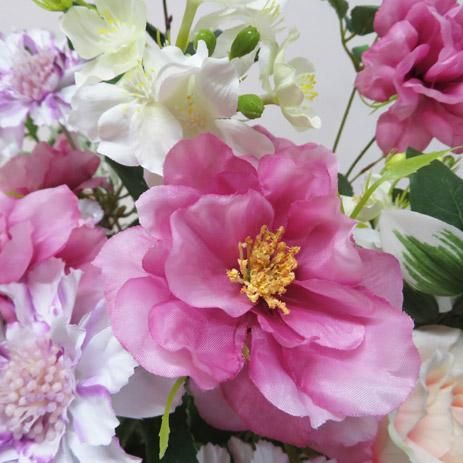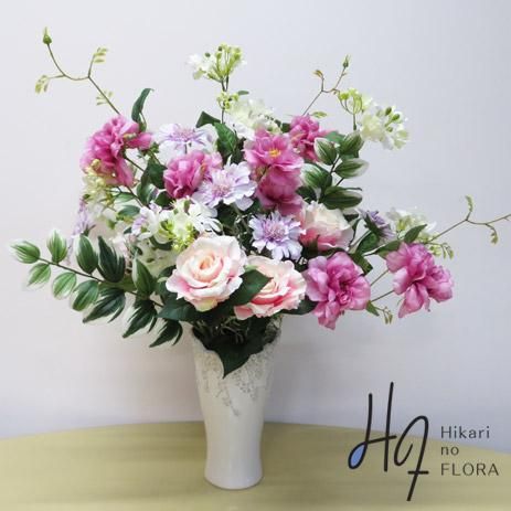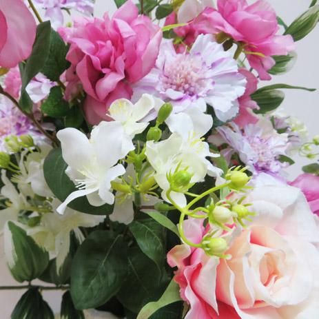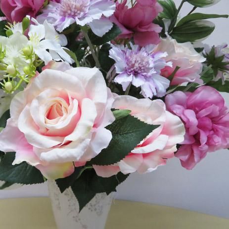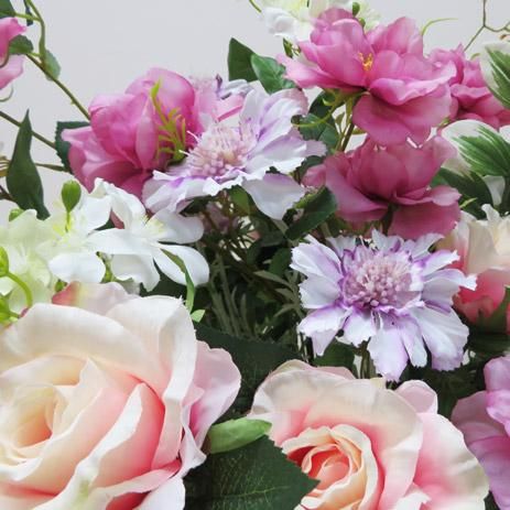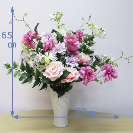 光触媒高級造花アレンジメント【ブルーメ】バラとスカピオサ・カウカシアのエレガントな高級造花アレンジメントです。高さ65cmです