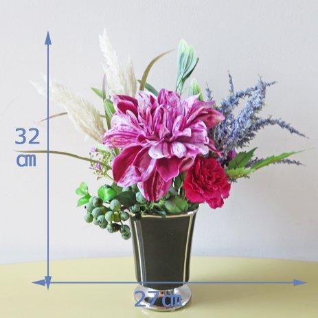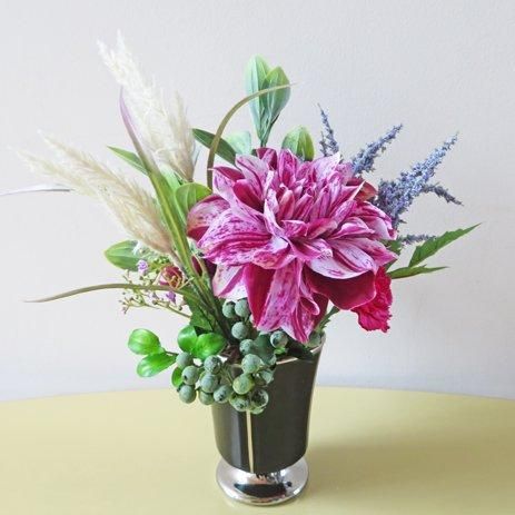 光触媒高級造花アレンジメント【月夜】大きな大きなダリアがインパクト大のアレンジです。