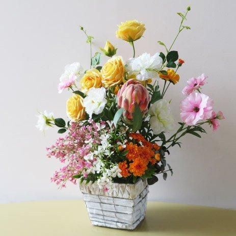 光触媒高級造花アレンジメント【エポカ】お花から元気をもらってください。小さいですが、希望がいっぱいの造花アレンジメントです。高さ30センチ。