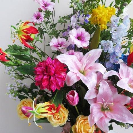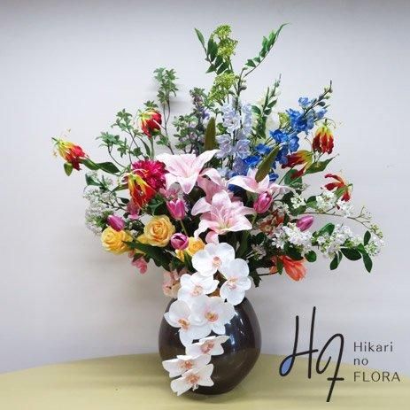 高級造花アレンジメント【マルテス】リリィーとローズのナチュラル感のある、高級造花アレンジメントです。