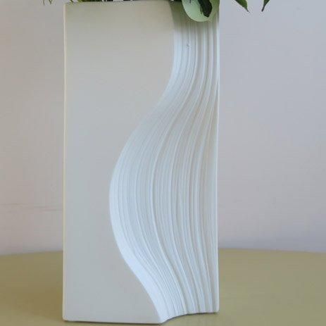 花器は、まるで彫刻のようなモダンベース。個性的なカタチや文様が際立つモノトーンの仕上げになっています。