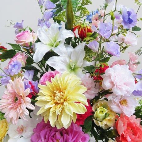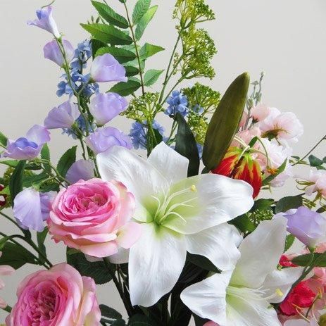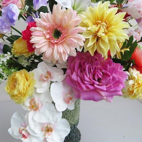 口径12cm対応のポットにアレンジした高級造花アレンジメントです。