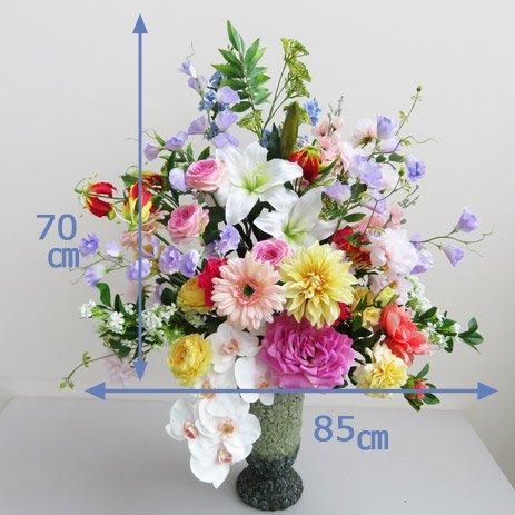 ポットの口から高さ約70cm(花器を含めると110cm)、横幅約85cm、奥行約70cm