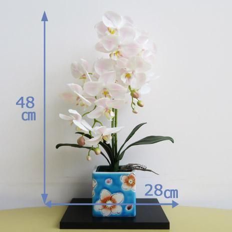 九谷焼の人気窯元「虚空蔵窯/花うらら ブルー」の花器に光触媒胡蝶蘭をアレンジしました。
