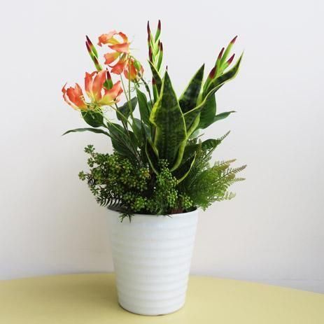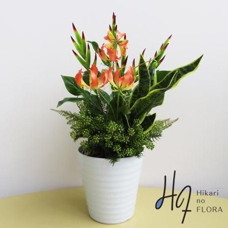 光触媒人工観葉植物【サンセベリア】サンセベリアとヘリコニアとグロリオサを入れた人工観葉植物です。